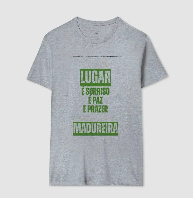 Nossas camisetas são de excelência em algodão brasileiro, ideais para todos os climas. Todas as cores são 100% algodão; exceto cinzas: 88% algodão e 12% poliéster.